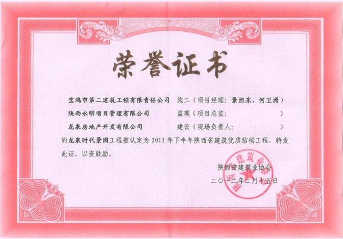 2011年省優(yōu)質(zhì)結(jié)構(gòu)(龍泉時(shí)代)
