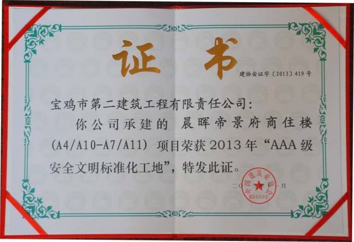 2013年度國家級“AAA級安全文明標準化工地”