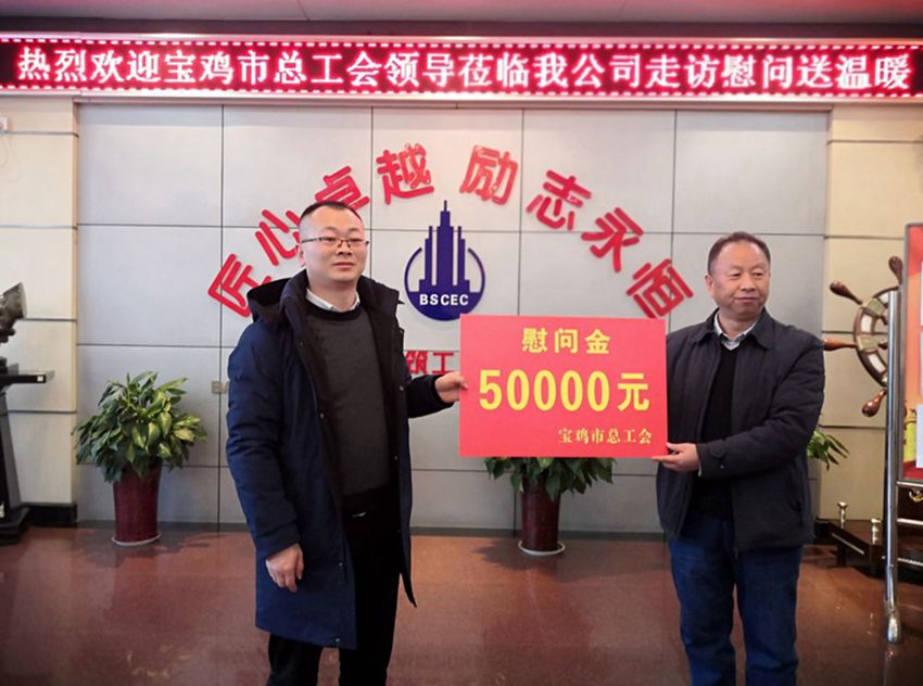 2021年1月12日下午,由寶雞市總工會黨組副書記、常務(wù)副主席趙會祥帶隊(duì)的市總工會慰問組來到我公司開展2021年“雙節(jié)”送溫暖活動,為公司送來5萬元慰問金。