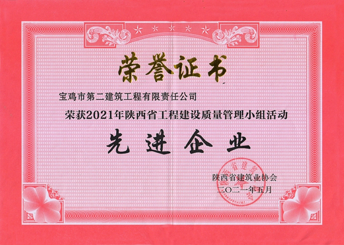 2021年陜西省工程建設(shè)質(zhì)量管理小組活動先進企業(yè)