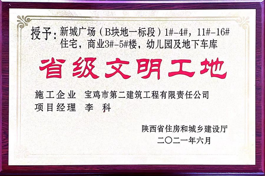 2021年省級(jí)文明工地(新城廣場(chǎng)(B塊地一標(biāo)段))