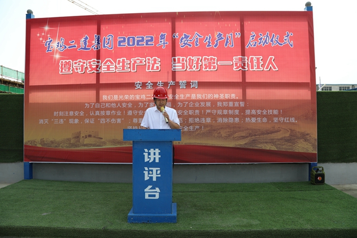 總經(jīng)理?xiàng)罱桨l(fā)表講話。他表示,今天是端午佳節(jié),集團(tuán)公司召開(kāi)“安全生產(chǎn)月”啟動(dòng)儀式暨動(dòng)員大會(huì),意義非凡,他代表集團(tuán)公司向節(jié)日期間堅(jiān)守奮戰(zhàn)一線的員工們致以崇高的敬意和美好的祝福,并對(duì)“安全生產(chǎn)月”活動(dòng)提出三點(diǎn)要求:一是充分認(rèn)識(shí)開(kāi)展“安全生產(chǎn)月”活動(dòng)的重要性,學(xué)習(xí)安全生產(chǎn)法,做到守法履責(zé)。二是持續(xù)開(kāi)展“安全生產(chǎn)萬(wàn)里行”,認(rèn)真做好“安全生產(chǎn)月”活動(dòng),分類(lèi)強(qiáng)化安全生產(chǎn)警示教育。三是高度重視、強(qiáng)化統(tǒng)籌,建立“安全生產(chǎn)月”長(zhǎng)效機(jī)制。他強(qiáng)調(diào),安全生產(chǎn)是企業(yè)的頭等大事,要以此活動(dòng)為契機(jī),廣泛開(kāi)展《安全生產(chǎn)法》主題宣傳活動(dòng),要始終把安全生產(chǎn)放在第一位,持續(xù)深入學(xué)習(xí)貫徹習(xí)近平總書(shū)記關(guān)于安全生產(chǎn)重要論述,積極推動(dòng)落實(shí)安全生產(chǎn)十五條措施,統(tǒng)籌理解安全與發(fā)展的關(guān)系,進(jìn)一步凝聚安全生產(chǎn)發(fā)展共識(shí),弘揚(yáng)安全文化,促進(jìn)集團(tuán)公司安全生產(chǎn)形勢(shì)持續(xù)穩(wěn)定。