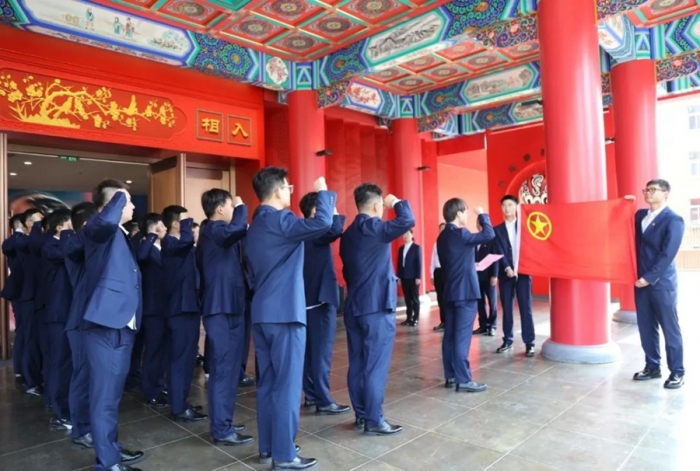 天水中南錦時(shí)住宅項(xiàng)目(安置區(qū)北區(qū))項(xiàng)目部團(tuán)員青年達(dá)云飛帶領(lǐng)大家重溫入團(tuán)誓詞。鏗鏘有力的誓詞回蕩在現(xiàn)場(chǎng),激勵(lì)著每一位團(tuán)員青年時(shí)刻銘記團(tuán)員使命,不忘初心,砥礪前行。